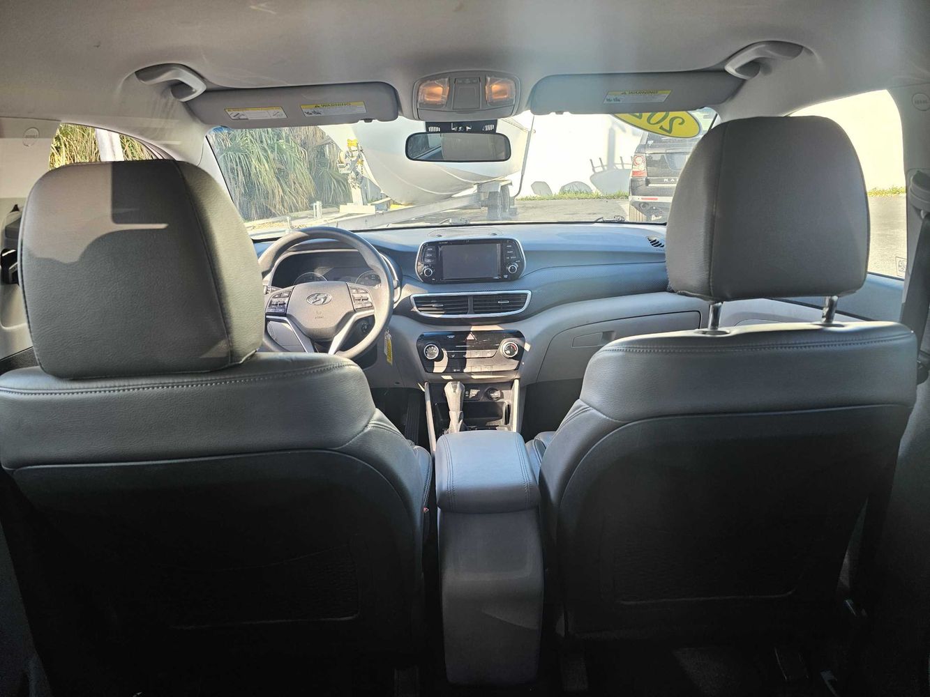 Front seatback upholstery: Plastic front seatback upholstery