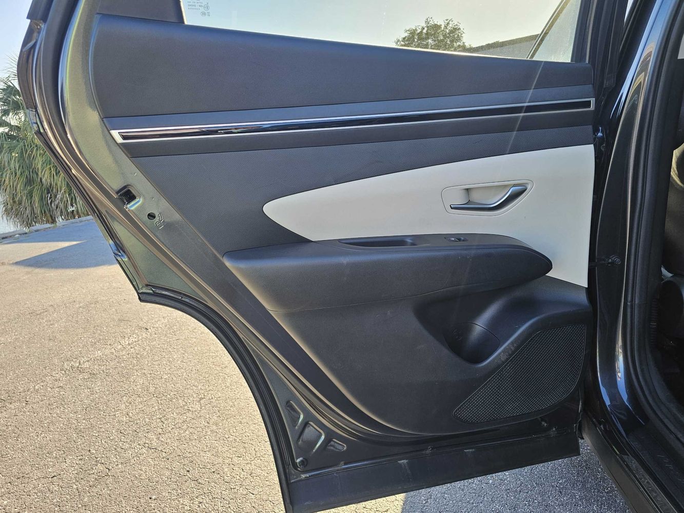 Door panel insert: Piano black and metal-look door panel insert